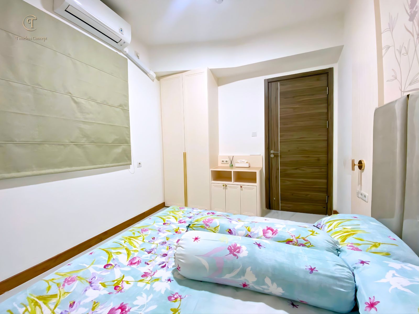 Guest room modern ini memadukan desain minimalis dengan elemen-elemen elegan, seperti headboard lembut yang berpadu dengan panel floral, pencahayaan hangat yang membuat suasana lebih relaks, dan storage compact yang tetap stylish. Setiap detailnya menciptakan kamar tamu yang rapi, nyaman, dan menyenangkan memberikan pengalaman menginap yang menghadirkan rasa tenang dan kesan premium.